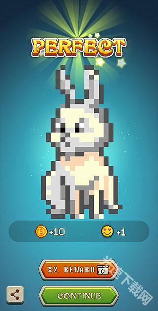 6、完成后,一只彩色的兔子就成功诞生了,把它放到你的像素岛屿上,可以提升你的等级获得相应的奖励哦。